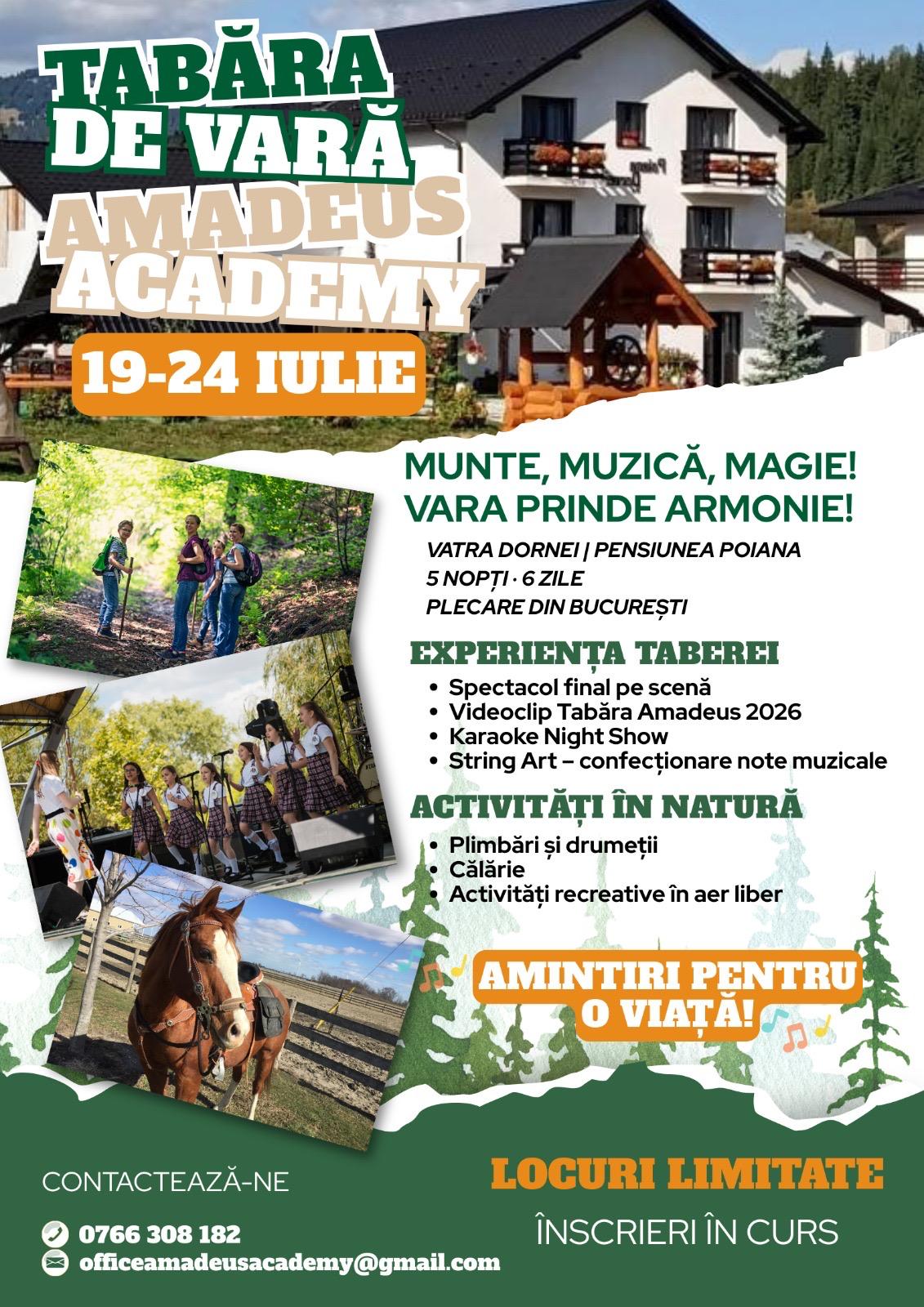 Amadeus Academy organizează o tabără de vară dedicată copiilor, care îmbină activități muzicale cu activități recreative în natură.